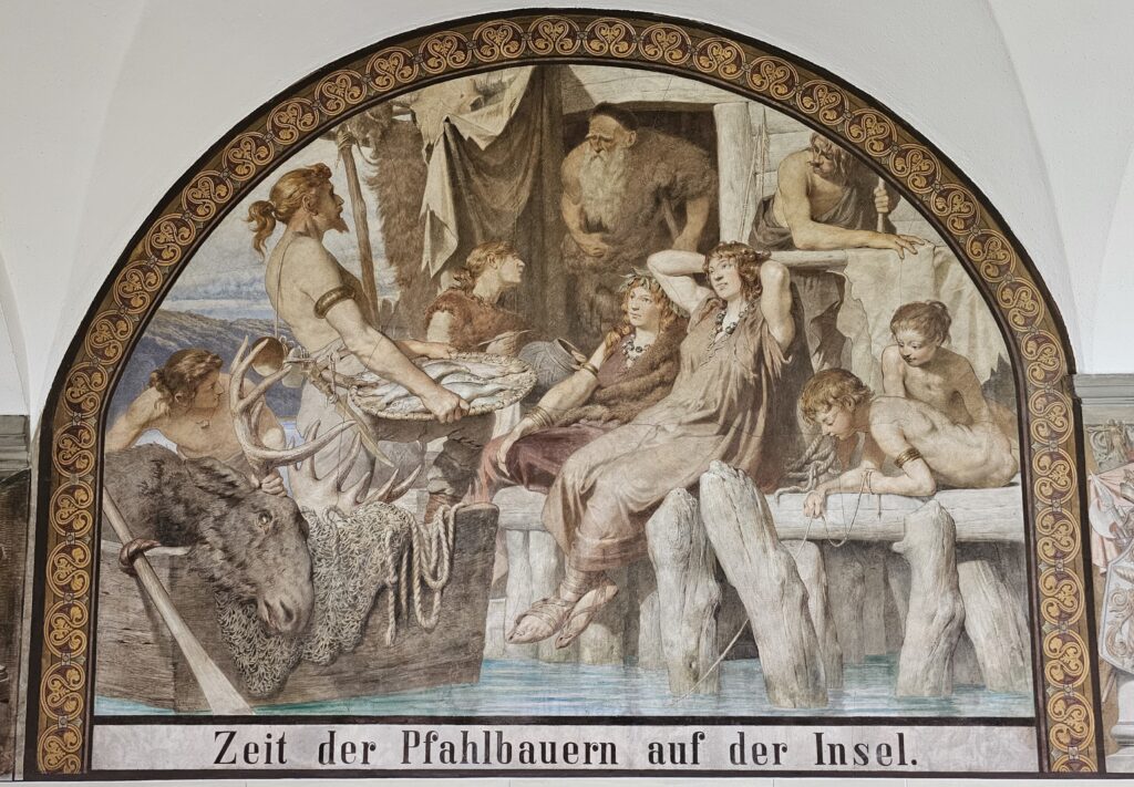Seit Mitte des 19. Jahrhunderts grassierte in der Schweiz das sogenannte «Pfahlbaufieber». Kein Dorfmuseum oder Liebhaber von «Alterthümern», der nicht stolz seine Pfahlbaufunde präsentierte. Was wurde nicht alles in diese neu entdeckte Kultur aus der Steinzeit hineininterpretiert: eine friedliche Dorfgemeinschaft in einfachen Hütten auf dem Wasser, bescheiden von dem lebend, was die Natur hergab. Tüchtige Männer mit Schnauz versorgten die Kleinfamilie mit grossen Hirschen und Körben voll Fischen. Derweil liebliche Frauen an Webstühlen die pausbäckigen Kinder betreuten.