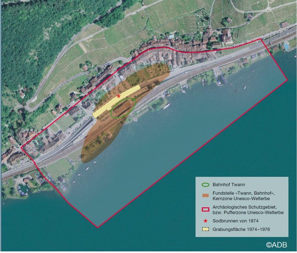 1874 wurden beim Bahnhof Twann erstmals Reste einer frühen Besiedlung ausgegraben. Hundert Jahre danach, von 1974 bis 1976, wurde vor dem Bahnhof Twann eine Unterführung für die Nationalstrasse N5 gebaut. Zuvor hat der Archäologische Dienst des Kantons Bern eine grosse Rettungsgrabung durchgeführt. Die Grabung war sehr erfolgreich. Eine grosse Menge an gut erhaltenem Fundmaterial zeigte auf, dass zwischen 3838 und 2976 v. Chr. an dieser Stelle nacheinander 21 Dörfer gebaut wurden.